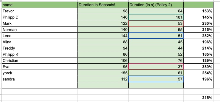 - Make sure that they put integer numbers in the result sheet. Be clear that “1:05” becomes “65”; “66,7” becomes “67”, “133.3” becomes “133” (otherwise, the formulas in the sheet break).